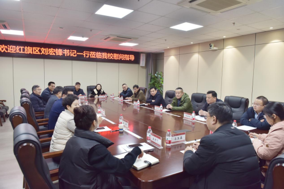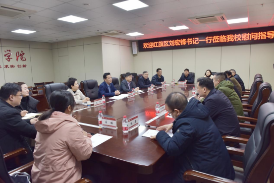 2月2日,新乡市红旗区委书记刘宏锋一行到威尼斯官网走访慰问,并开展座谈交流。红旗区四大班子相关领导参加活动。威尼斯官网党委书记孙功奇,校长王孝俊,党委副书记、工会主席高炜,副校长张占祯出席活动,党委办公室、校长办公室等部门负责同志参加活动。