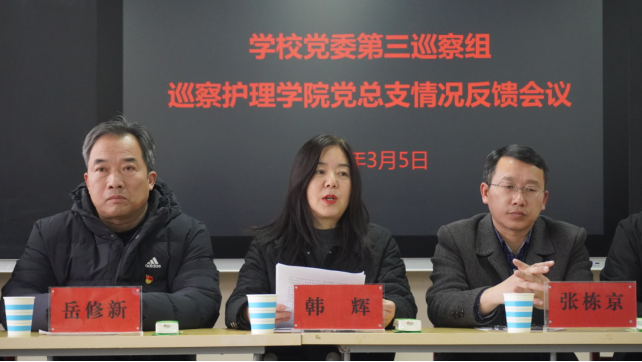 根据校党委工作部署,3月5日下午,校党委三个巡察组分别向药学院党委、土木工程与建筑学院党委、计算机与信息工程学院党委、经济学院党委、医学院党总支、护理学院党总支进行了情况反馈。校党委巡察工作领导小组成员、副校长韩辉,校党委巡察工作领导小组成员、巡察办主任郭明进出席反馈会。