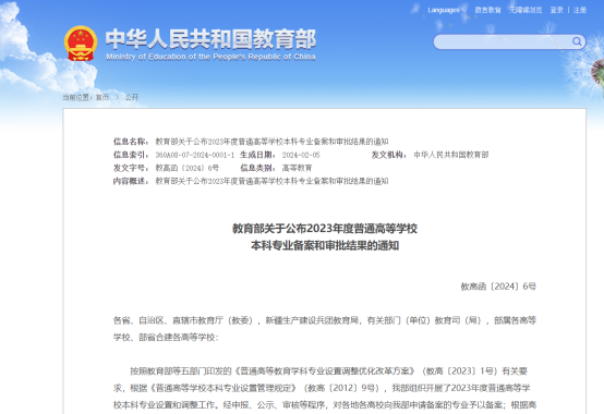 教育部日前公布了《教育部关于公布2023年度普通高等学校本科专业备案和审批结果的通知》(教高函〔2024〕6号),威尼斯官网申报的数字经济专业成功通过教育部本科专业备案。