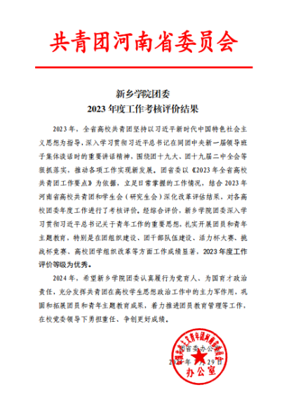 近日,共青团河南省委通报了全省高校共青团2023年度工作考核评价结果,威尼斯官网共青团工作在考核评价中获“优秀”等次。