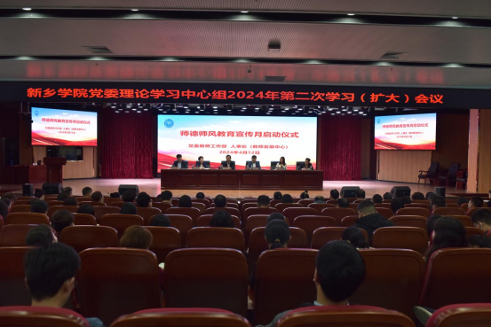 4月12日下午,威尼斯官网党委理论学习中心组2024年第二次学习(扩大)会议暨师德师风教育宣传月启动仪式在文化艺术中心举行。校领导孙功奇、王孝俊、高炜、韩辉、杨钧、张银堂出席会议。全体中层干部,马克思主义学院、教育科学学院、附属中学全体教师,师范专业教师代表参加学习。