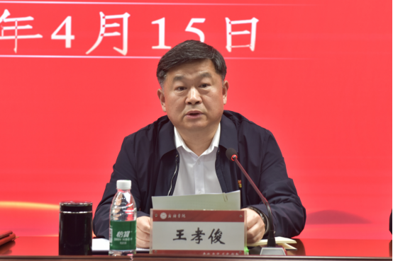 4月15日下午,学校在图书馆一楼东报告厅召开会议,对学校党纪学习教育工作进行动员部署。校领导孙功奇、王孝俊、高炜、宋伟、鲍晋选、韩辉、杨钧、张银堂、陈磊山出席会议,二级党组织书记、职能部门党支部书记和党纪学习教育专班工作组全体成员参加会议。会议由校长、党委副书记王孝俊主持。