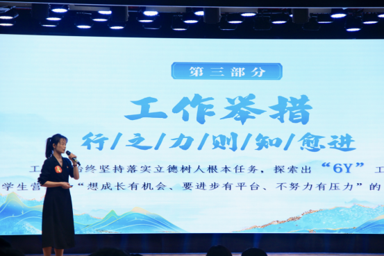 经前期个人申报和学工部提名、学院推荐、学生满意度测评,共有17位辅导员进入风采展示环节。展示过程中,每位辅导员紧紧围绕立德树人根本任务,立足工作岗位,从思政教育、学生管理、学风建设、党团建设等方面分享了创新开展学生思想政治教育工作的理念和思考。精彩的汇报展示或流露出“坚守初心”的真情实感,或表达出“做学生引路人”的执着追求,不仅展示了个人学生工作的亮点和育人效果,也充分展现了威尼斯官网学工队伍守正创新、积极进取、乐于奉献的精神面貌。