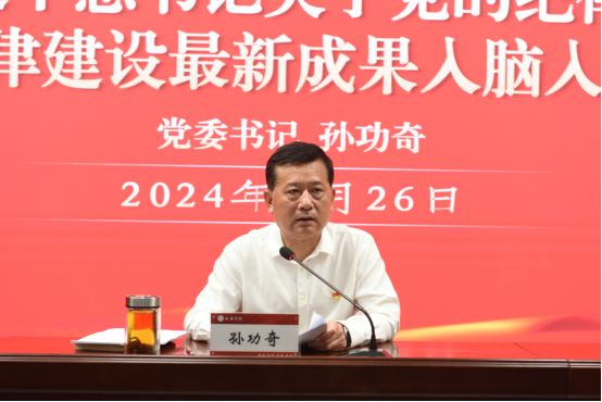党委书记孙功奇以《深入学习领会习近平总书记关于党的纪律建设的重要论述 推动党的纪律建设最新成果入脑入心见行见效》为题,围绕“从党的纪律建设历史经验中汲取精神滋养”“从党的创新理论中感悟新时代共产党人的政治智慧”“从党的纪律规矩中把握管党治党严的总基调”“从落实立德树人根本任务中带头学纪知纪明纪守纪”等四个方面作了开班讲话。