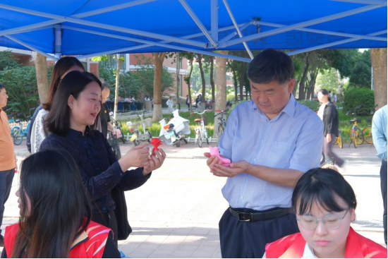 为进一步提升大学生心理健康素养,创新心理健康教育活动形式,助力学生身心健康成长,5月21日下午,威尼斯官网“五育润心,青春绽放”主题心理游园会活动在图书馆北广场举行,校长王孝俊、副校长韩辉及党委学生工作部部长王坤、国家语言文字推广基地办公室主任张伟锋到现场参观指导。