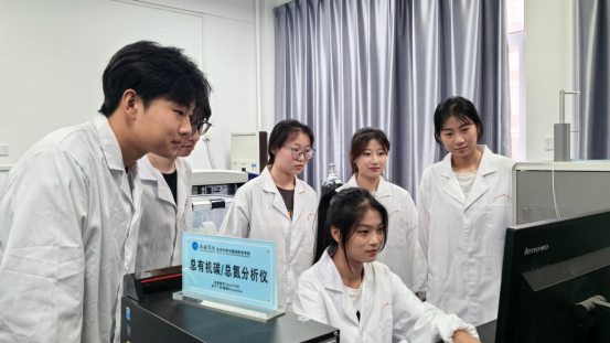 图为实践团成员对采取样品的实验数据进行分析