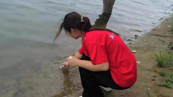 图为实践团成员对水体样本进行采集