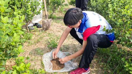 图为实践团成员对土壤样本进行采集