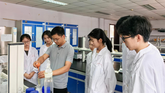 图为实践团成员在实验室进行实验分析
