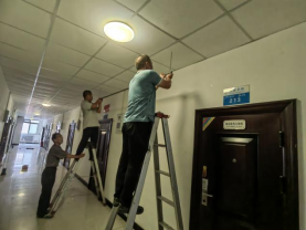 水电暖服务中心不惧炎热,每天面对平均35℃以上的高温甚至部分室内区域温度达到40℃以上,但为了保障开学后校内的公共设施都能焕然一新,全体人员不惧高温酷暑,坚持完成了校内教学区、宿舍区、餐厅等场所进行集中维修任务。共维修教室143间、维修公共区域235处;学生宿舍楼25栋750间宿舍。为东、西区餐厅移装灭蚊消毒灯40盏;为西区餐厅洗碗机更换了总开关并加装了不锈钢配电柜,确保洗碗机安全运转;为东区餐厅1楼、2楼洗碗机铺设专用电缆75m,增加两组配电箱并完成相关调试工作,确保东区餐厅开学正常的餐具清洗工作。