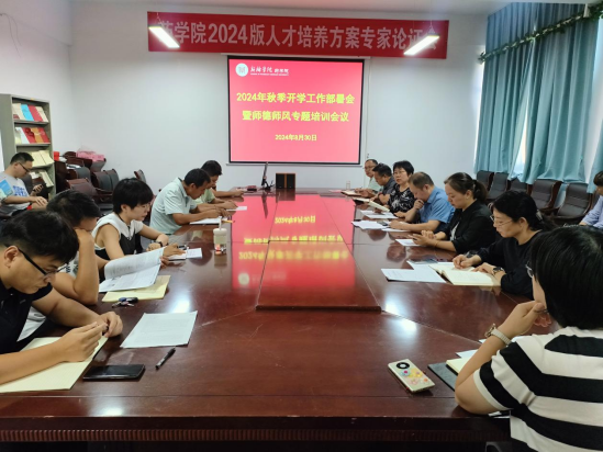 新学期,新气象,新征程,新希望。为深入学习贯彻党的二十届三中全会精神,贯彻新时代党的教育方针,涵养高尚师德师风,确保2024年秋季学期平稳有序开学,8月30日下午,药学院在A12号楼115会议室召开2024年秋季学期开学工作部署会暨师德师风专题培训会议。药学院领导班子和全体教职工参加会议,会议由药学院党委书记骆云飞主持。