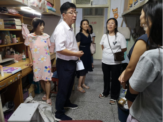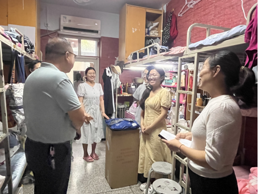 为第一时间掌握学生返校情况,了解学生的思想动态,强化宿舍安全与卫生管理,敦促学生保持良好的生活与学习习惯、鼓励学生以积极的状态迎接新学期的学习。教育科学学院于9月1日下午,由学院党委书记吕明哲、院长牛长海率领学院全体领导班子成员及辅导员队伍,深入学生宿舍,开展了新学期寝室走访活动。