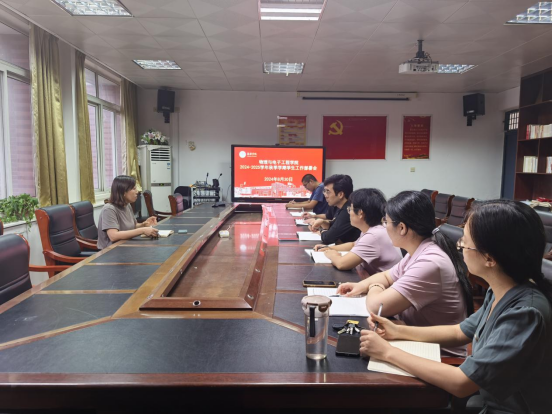 8月30日,物理与电子工程学院在A09四楼会议室召开新学期学生工作会议。党委书记张晓蕊、副书记王玉平和各年级辅导员参加了会议。会议传达了学校2024年秋季学期工作部署会,参会成员集体学习了学校有关家庭经济困难学生认定等方面的相关条例。张晓蕊结合具体问题对新学期的学生工作进行了安排,要求全体学工干部提高政治站位,强化责任意识,用心用情做好学生教育管理工作,抓牢抓实抓细学生安全教育工作,结合实际情况提前谋划学生工作,共同推进学院学生工作高质量发展。