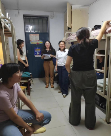 在走访过程中,老师们与新生进行了面对面的交流。周珍详细询问了新生们的对住宿环境、生活需求以及专业认知情况,耐心听取了他们在适应新环境过程中遇到的困难和问题,并给予了针对性的建议和帮助。李然鼓励同学们要相互关心、相互帮助,共同营造和谐的宿舍氛围。和颖查看了宿舍设施,了解宿舍的安全状况,特别强调了宿舍用电安全,提醒同学们要提高安全意识,防范于未然。