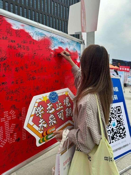 迎新过程中,商学院志愿者们不遗余力地帮助新生将行李搬运至宿舍楼,沿途向新生及家长介绍校园环境,并带领他们参观寝室。他们积极耐心,认真负责,协助新生完成各项报道工作,分享大学的学习与生活,解答他们可能遇到的问题。学院特别定制了专属帆布包,为每位前来报到的新生送上了温馨且实用的“爱心包”。2024级新生在商学院服务台的迎新展板上认真寻找自己的名字并留下自己的亲笔签名,并与家长合照留下难忘而有意义的瞬间。