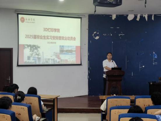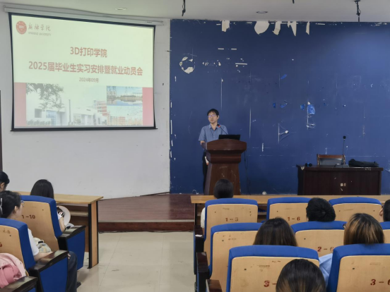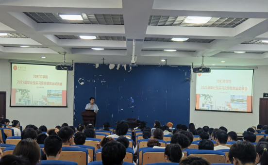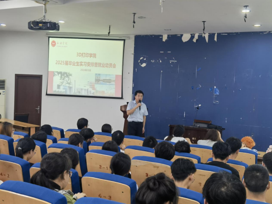 近日,3D打印学院在A05报告厅召开2025届毕业生实习安排暨就业动员会,学院党委书记田文强,副书记刘传虎、副院长李在林和毕业班辅导员出席动员会,2025届全体毕业生参会。