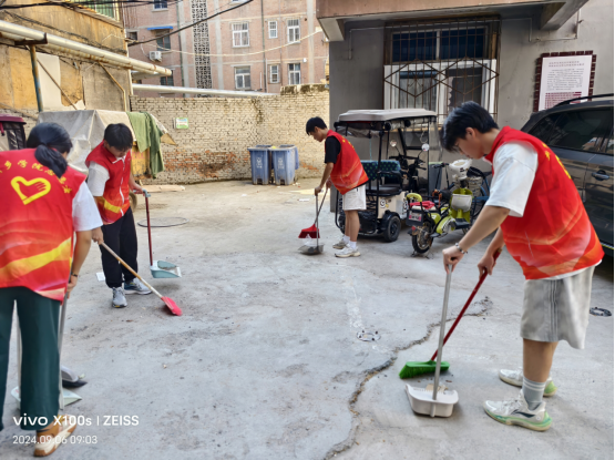 活动当天,3D打印学院的党员志愿者师生到达现场后,经过简要规划和分工后立即行动。党员志愿者们手持扫帚、簸箕、铁铲、剪刀等工具各司其职,有的打扫和清理垃圾与杂物,有的专注于修剪杂草和树枝,还有的给当地居民宣传环保理念与知识,引导大家共同维护美丽城市。现场气氛热烈而有序,党员志愿者克服高温酷暑,汗流浃背但不叫苦不叫累,一个个干得热火朝天,用实际行动诠释着对环保事业的热爱与执着的同时,充分展现了共产党员冲锋在前的宗旨意识。