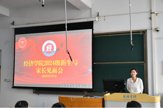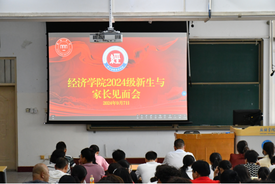 为贯彻落实“立德树人”根本任务,营造“三全育人”工作环境,进一步加强与新生家长的联系、沟通与交流,共同促进学生健康成长,经济学院于9月7日下午在A01-119教室举行2024级新生及家长见面会暨入学教育。学院党委书记陈卓,副院长郭玉杰,学工办副主任茹贵斌,2024级新生辅导员张薇帏、张炜华,全体新生及家长参加见面会。会议由张薇帏主持。
