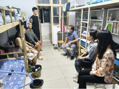为进一步加强宿舍安全管理,及时关注学生的生活需求、思想动态等,9月11日晚,人文学院党委书记、院长李金玉,副书记张武强,副院长申红星、梁琨和辅导员老师们一行人先后进入D09、E07宿舍楼多间宿舍,开展了走访活动,给同学们带去了新学期的关心与问候。