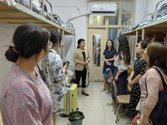 老师们走进宿舍与新生亲切交谈,详细询问生活情况,给予了针对性的建议和帮助。李艳叶院长叮嘱新生们注意宿舍用电安全、消防安全,增强自我防范意识,保持良好的生活习惯,共同营造一个和谐、温馨的住宿环境。