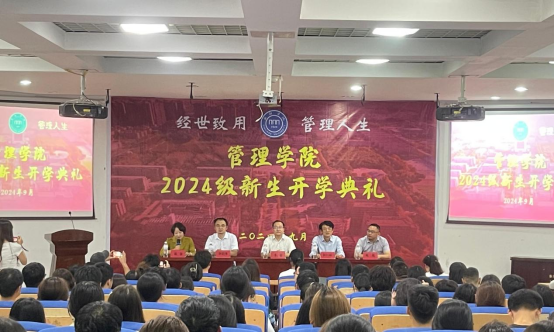 9月13日,威尼斯7798cc管理学院2024级新生开学典礼在A05号楼一楼报告厅顺利举行。管理学院党委书记李强,院长孙江超,副书记李庆伟,副院长郭强、茹茜,2024级本科新生,高年级学生代表和学院全体老师出席。典礼由茹茜主持。