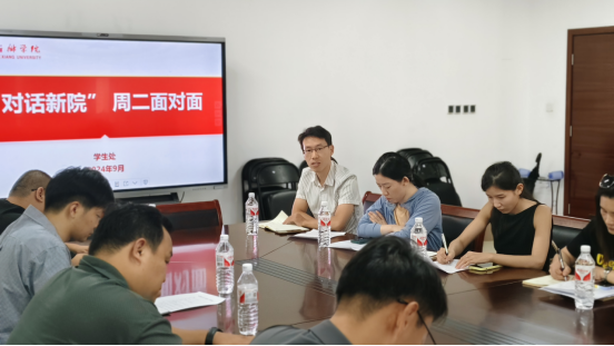 为持续发挥“对话新院”工作成效,坚持贴近学生学习生活,了解学生所思所想,了解学生的发展需求,及时调整工作思路和方法,切实做好学生教育管理服务工作,2024年秋季学期“‘对话新院’—周二面对面”第一期活动于9月14日下午在图书馆701会议开展。