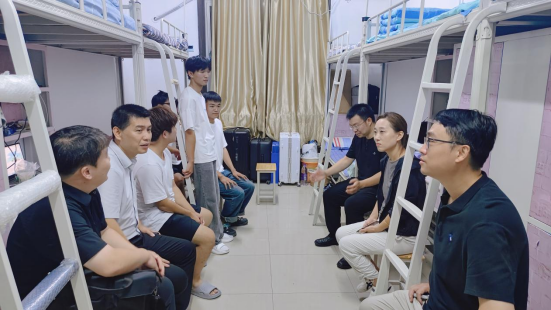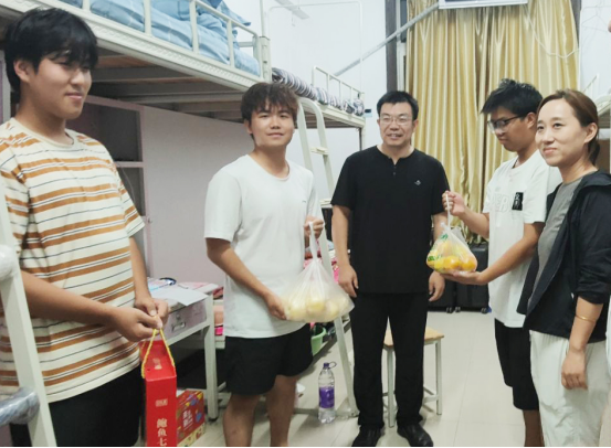 丹桂飘香香满校,花好月圆圆全时。在2024级新生在学校迎来的第一个中秋假期之际,9月17日中秋佳节当晚,机电工程学院党委书记张烨,院长周宁,党委副书记陈云飞,副院长连黎明、杜川和2024级辅导员带着满满的心意和祝福,深入到新生宿舍,为大家发放月饼和慰问品,并同大家亲切座谈,共度美好的中秋节日。