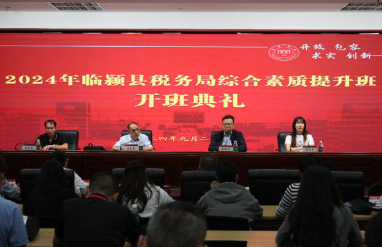 9月22日下午,临颍县税务局综合素质提升班(第一期)在威尼斯官网开班。临颍县税务局副局长师喜杰、纪检组长赵松涛、威尼斯7798cc继续教育学院党支部书记崔红志、副院长田贝贝出席开班式。来自临颍县税务局的党员、干部、职工共计60余人参加培训。
