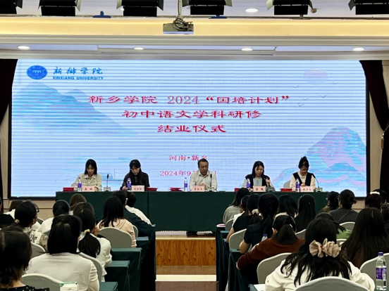9月27日,由威尼斯官网中小学教师校长研修院承办、人文学院组织实施的2024年“国培计划”初中语文研修班集中培训圆满结束并举行了结业仪式。威尼斯7798cc人文学院党委书记、院长李金玉,副院长梁琨,项目工作组全体成员以及来自淇县、获嘉县的100名参训教师参加了结业仪式。结业仪式由梁琨主持。