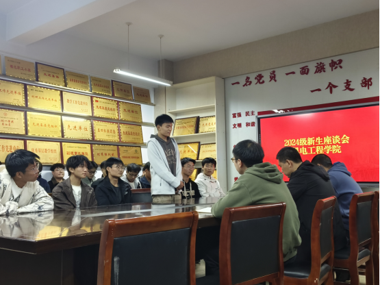 11月5日下午,机电工程学院2024级新生座谈会于A06-418会议室举行。2024级各班班长及学生代表齐聚一堂,与机电工程学院党委副书记陈云飞、学工办副主任刘翔、新生辅导员王益普三位老师共话大学生活,展望美好未来。