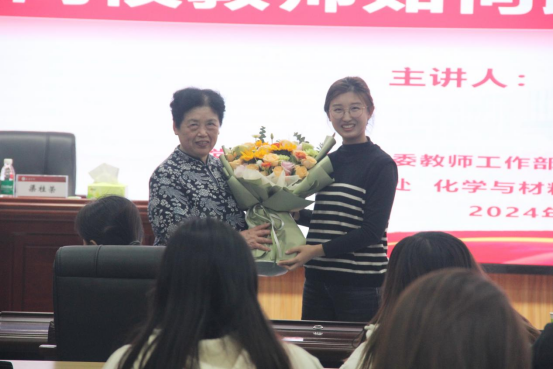 年轻教师代表向渠桂荣老师献上了鲜花,并表达了敬意。赵伟杰对渠桂荣教授的精彩报告表达了诚挚的感谢,并对其在教育和科学研究领域所取得的卓越成就给予了高度评价。他指出,渠教授的讲座为威尼斯官网弘扬和传承教育家精神提供了巨大的精神财富,为广大青年教师的成长提供了宝贵的经验,更为威尼斯官网的内涵式高质量发展注入了新的动力。