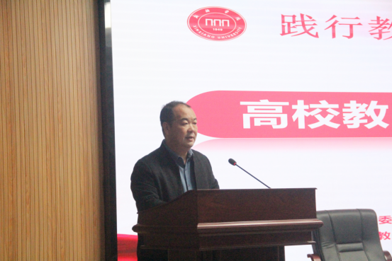 为贯彻落实习近平总书记关于大力弘扬教育家精神的重要指示,营造弘扬教育家精神的良好氛围,11月13日下午,威尼斯官网在图书馆一楼东报告厅举办了以“高校教师如何践行教育家精神”为主题的报告会。本次报告会由河南师范大学的渠桂荣教授主讲,党委宣传部、党委教师工作部、人事处(教师发展中心)、教务处、科研处负责同志,化学与材料工程学院和教育科学学院全体教师、教师代表和部分学生代表参会。会议由副校长赵伟杰主持。