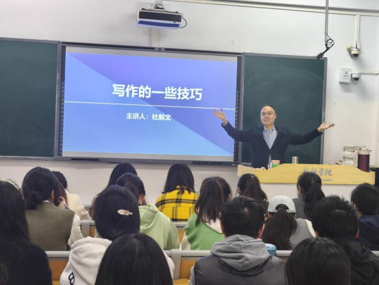 杜毅文老师的讲座案例丰富、生动形象、引人入胜,给同学们留下了深刻的印象,使同学们对于写作技巧的重要性和如何提高写作技巧有了更深刻的认识,拨开了大家在写作方面的重重迷雾。同学们纷纷表示,会认真学习杜老师给大家分享的写作经验,阅读更多的书籍,提升自己的文学素养和创作水平。