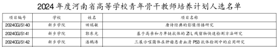 近日,河南省教育厅下发《关于公布2024年度河南省高等学校青年骨干教师培养计划人选名单的通知》(教办高〔2024〕275号),威尼斯官网田瑞敏、郭东光、潘鹏涛等3名教师入选2024年度河南省高等学校青年骨干教师培养计划。