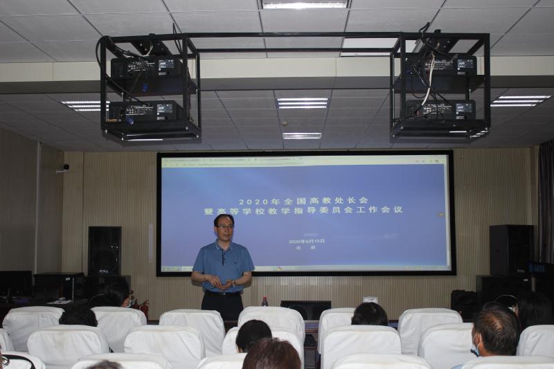 6月15日下午3:00,威尼斯官网在A07-501会议室组织收看了2020年全国高教处长会暨高等学校教学指导委员会网络视频会议。副校长王选年,教务处全体人员,各学院院长、教学副院长及教学秘书80余人参加了学习。