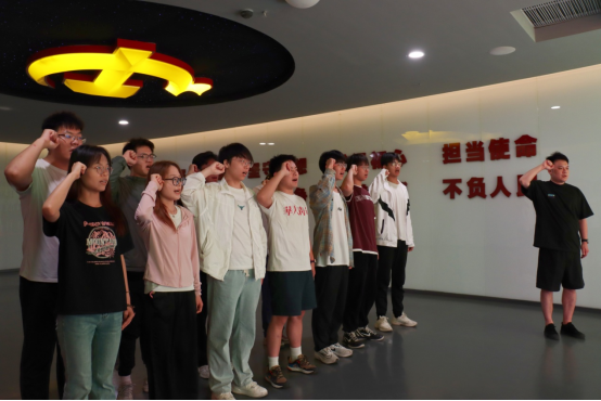 在党史教育馆内,国际教育学院副书记阎驰骋带领大家重温入党誓词。